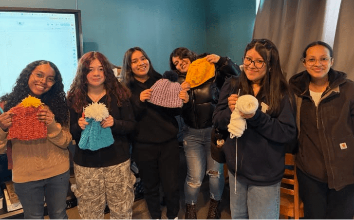 Escuela Verde's Crochet Club made hats and donated to Street Angels, an outreach program that focuses on building lasting relationships with individuals experiencing homelessness, offering resources, hope, and a pathway to stability.