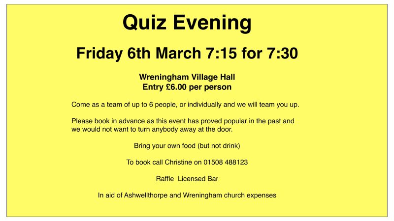 Welcome to your new format Weekly "What's On in Wreningham" email!