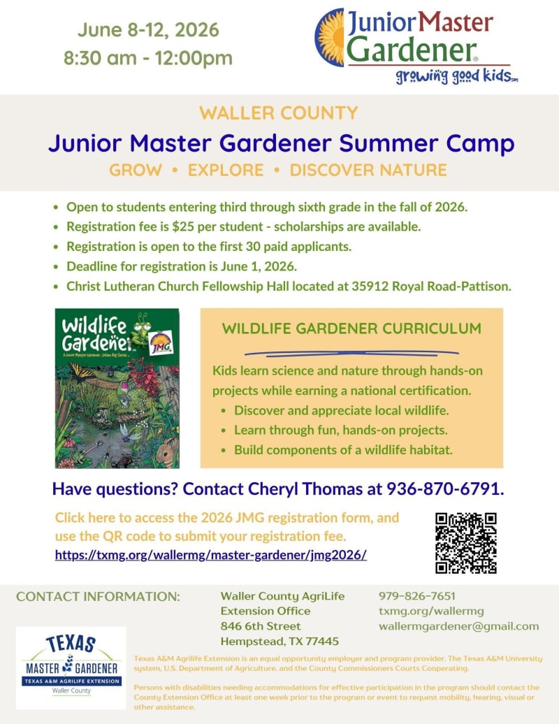 first 30 paid students. https://txmg.org/wallermg/master-gardener/jmg2026/