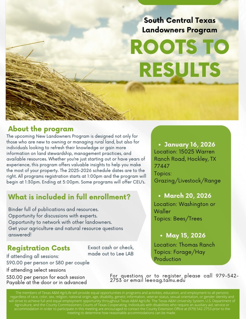 Texas A&M AgriLife Extension is an equal opportunity employer and program provider. The Texas A&M University system, U.S. Department of Agriculture, and the County Commissioners Courts Cooperating.