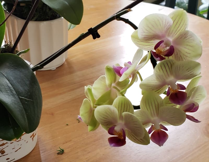Both stalks on this orchid are on their 2nd bloom cycle. The stalk on the right