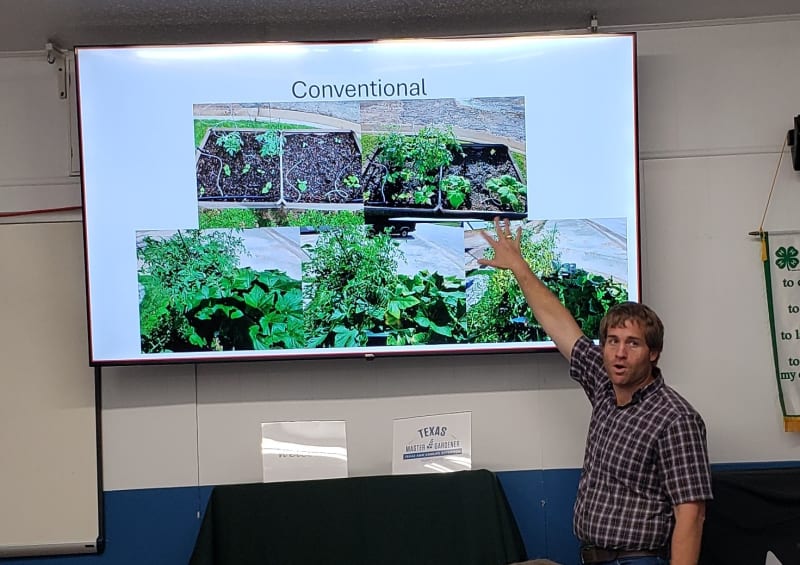 Waller County Extension Agent Matthew March presented his 2025 Fertilizer Comparison Results report to the Waller County Master Gardeners on Thursday, March 5th. March designed the trials and then partnered with the master gardeners to execute the experiment. The trials took place at the Extension Office in four raised beds. The objective was to demonstrate common fertilizer types and their impact on vegetable production in spring and fall gardens. The three fertilizers that were used in the spring & fall trials were a conventional fertilizer, worm castings and Alpaca manure.