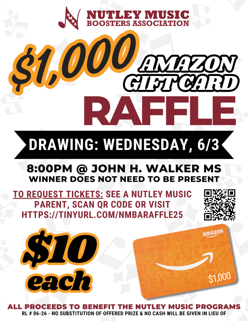 We are excited to kick off our $1,000 Amazon Gift Card Raffle. We encourage everyone to participate and help spread the word as we continue raising funds to support our students and music programs across the district.