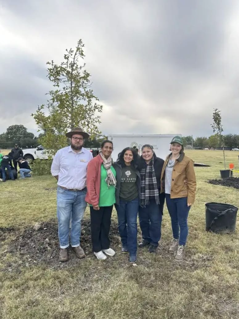 During the first annual UTD JSOM Day of Service, students, staff, and faculty braved a drizzly Halloween morning to trade business casual for work gloves and plant trees together.