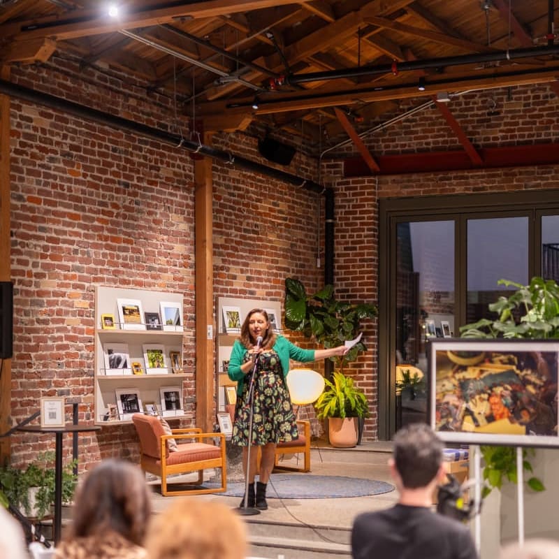 The evening opened with emcee Nina G, comedian and author of Stutterer Interrupted, who welcomed guests with warmth and humor.