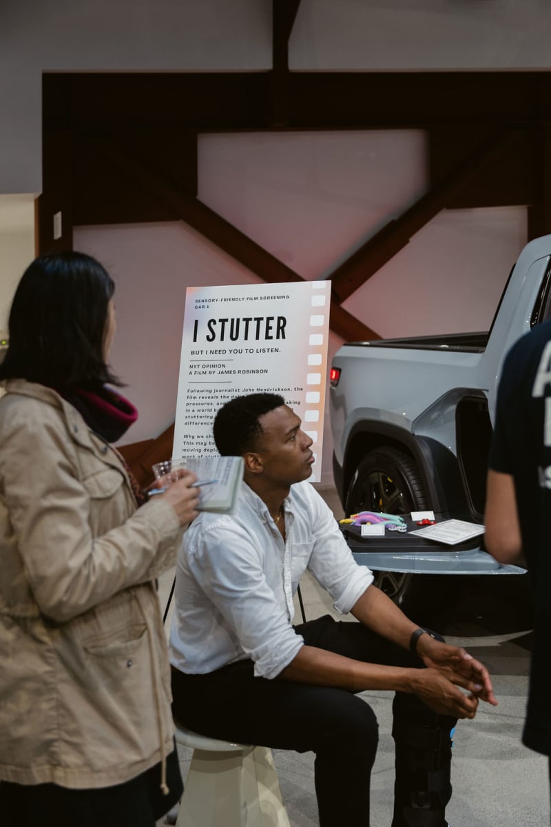 Short films I, Stutter by James Robinson and Tartamudeo by Dave Rodriguez screened in Rivian car screening rooms, giving more perspective on the stuttering experience and representing what the power of storytelling could accomplish.