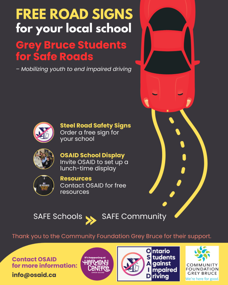 Free road sign program offers comprehensive road safety messaging, including signs, displays, and no-cost resources!