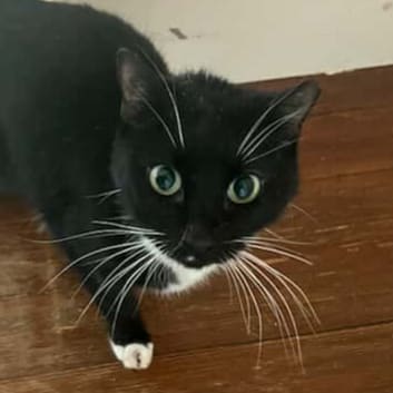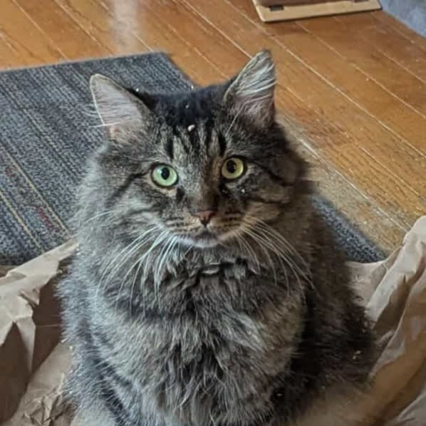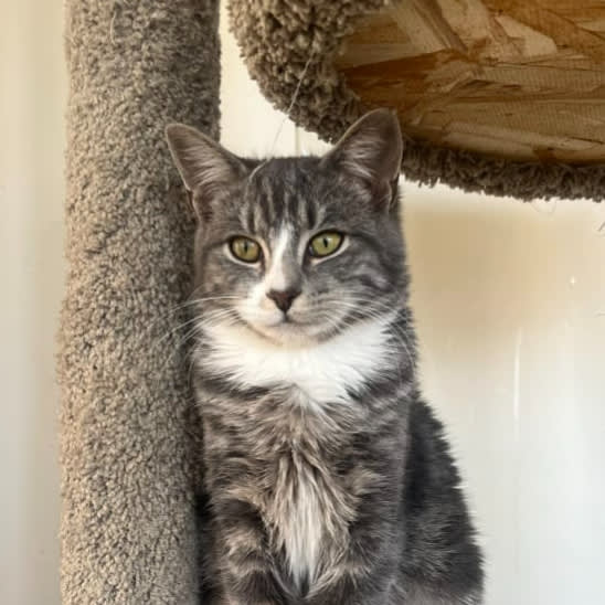 Hermette was one of Joni’s cats and is semi-feral. She is content just hanging out in her cat bed and having a Churu served to her now & again. She is quite beautiful and we would love to find her a home where she can live her life safely and calmly. Her purr’fect home would be quiet without a lot of comings & goings. She has no interest in playing with other cats; she prefers to just chill out, so moving into a home with a senior cat or other cat that stays to themselves or no cats at all would be best.