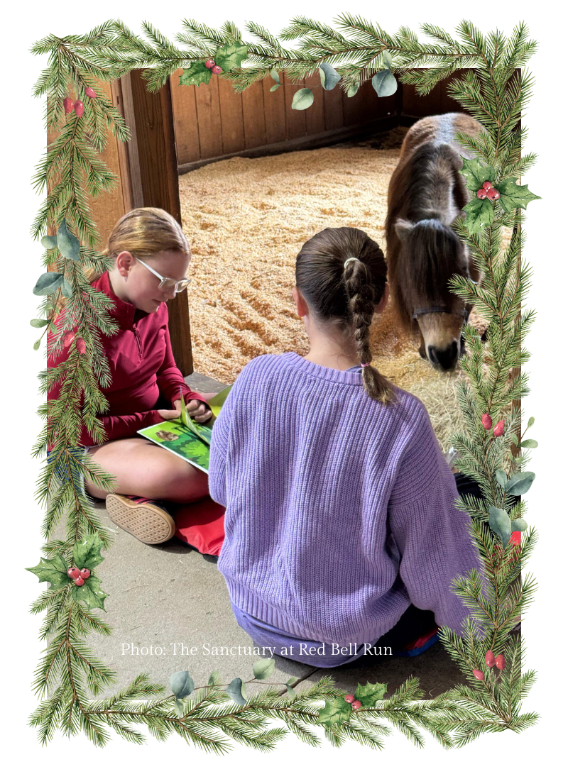 Reading With Rescues is a gentle literacy experience where children read aloud alongside our calm, people-loving miniature horse rescues…There’s no pressure, no correction, no performance required…just presence, patience, and soft attention…