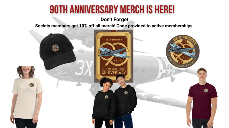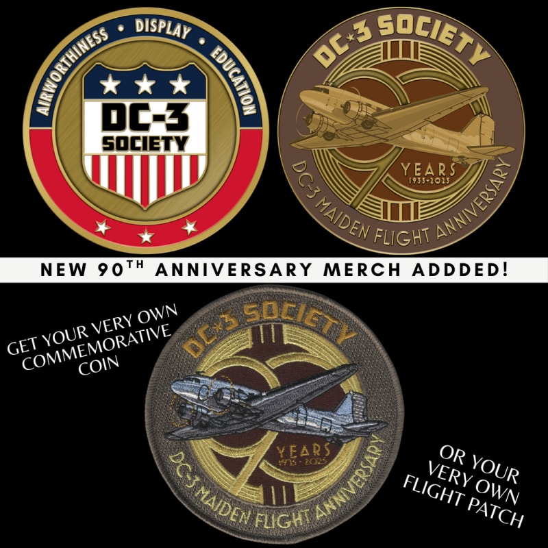 Commemorative coins, shirts, hats, and flight patches are available! Don’t miss your chance to lock down exclusive 90th Anniversary and DC-3 merchandise while supporting and celebrating this legendary aircraft.