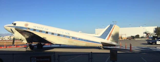 Douglas DC-3-362 (c/n 3269, N760) marked 'Spirit of Seventy Six' on display at Exposition Park, Los Angeles, December 1991. (André Gerwing via Wikimedia Commons)