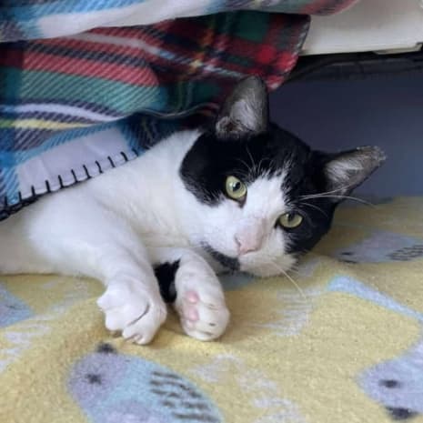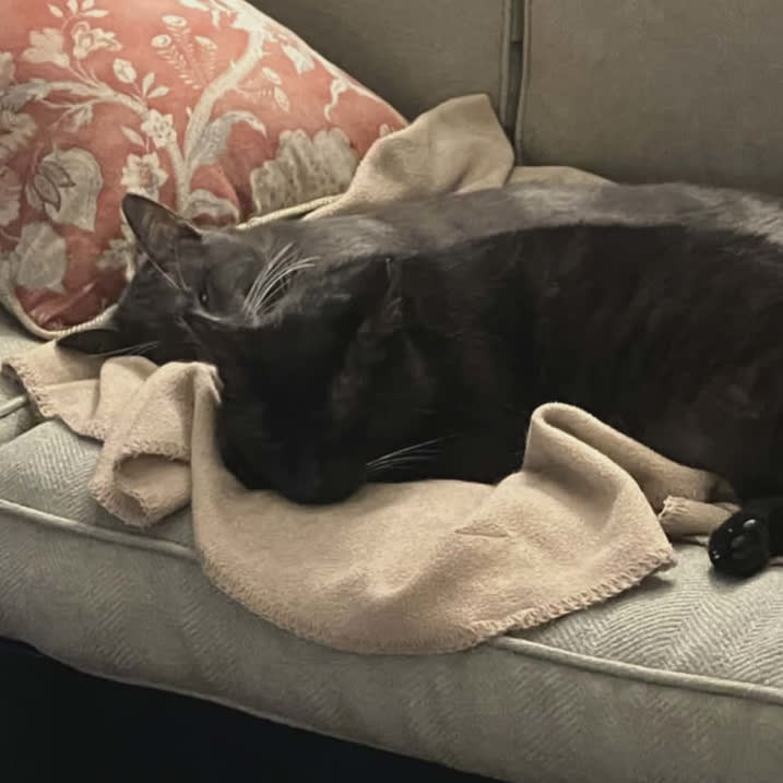 “We adopted Wilson (formerly Lincoln) back in August 2024. When he was rescued by BFF from a feeding station, he was found to be extremely sick and FIV +. The vet record basically states they don’t know how he pulled through, and they basically just threw everything they could at him and hoped for the best — I always say it’s because he knew he was supposed to come home to us one day.