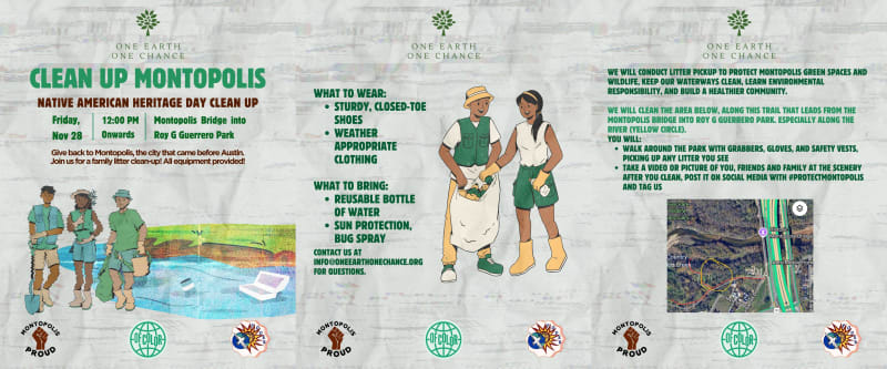 From Heritage to Habitat Protection: On Native American Heritage Day, our community joined together for a meaningful clean-up from Montopolis Bridge into Roy G. Guerrero Park, honoring the land while removing litter to protect green spaces and waterways. Volunteers helped preserve local wildlife habitats and celebrated Montopolis’s rich history through action.