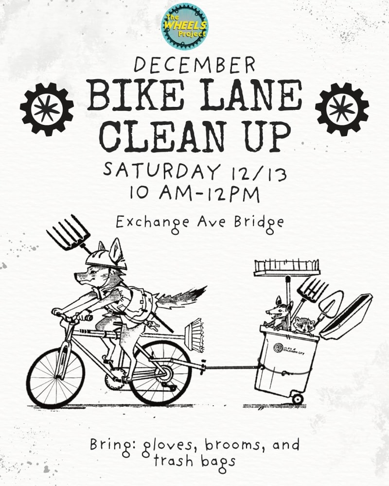 We've been doing bike lane clean-ups every second Saturday. Keep an eye on our social media for meetup times and locations for the future clean-ups. The next one is on Saturday, December 12th, at 10am. We'll be cleaning up the Exchange Ave bridge bike lane.